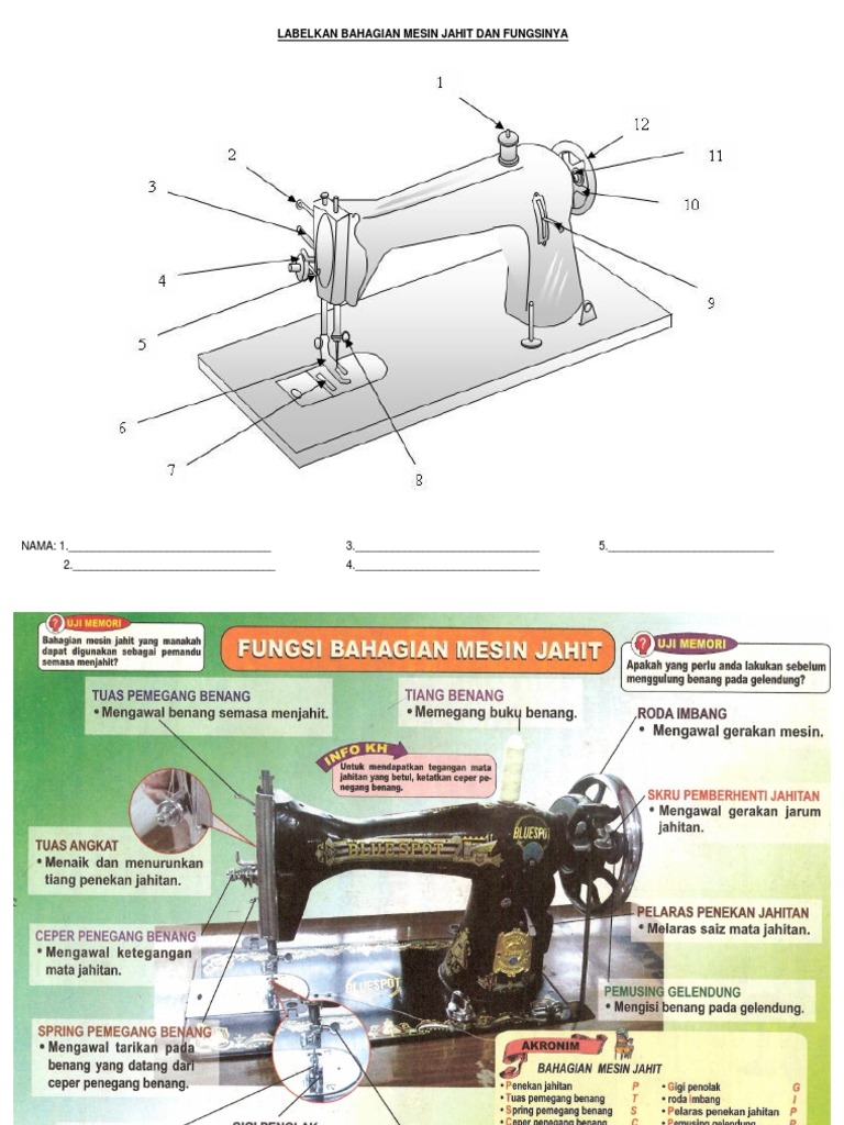 Labelkan Bahagian Mesin Jahit Dan Fungsinya