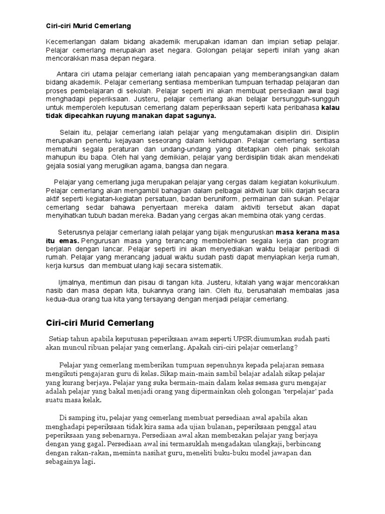 Karangan Thn5 Ciri Murid Cemerlang